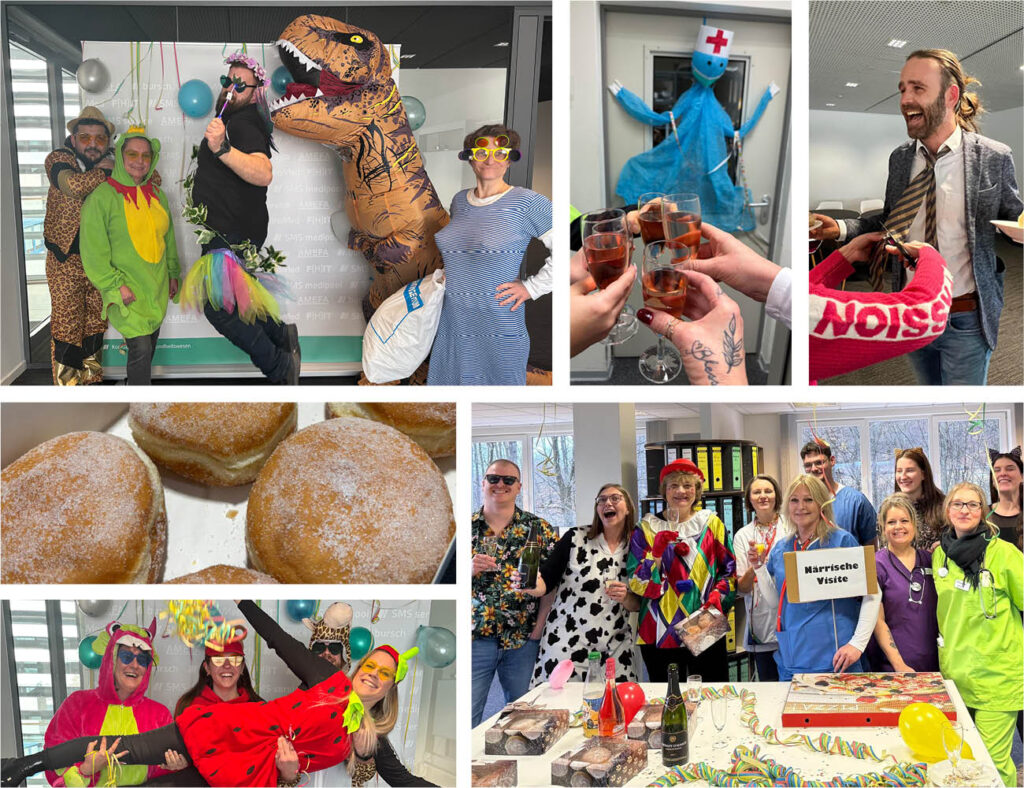 An unseren Standorten wurde gemeinsam mit viel guter Laune und originellen Kostümen Fasching gefeiert. Natürlich durften auch klassische Berliner/Krapfen nicht fehlen, denn gemeinsame Pausen gehören genauso zu einer starken Unternehmenskultur wie professionelle Zusammenarbeit. Besonders schön war unsere „närrische Visite“ durch die verschiedenen Bereiche – ein Moment, der für viele Lacher und spontane Begegnungen sorgte. Solche gemeinsamen Aktionen stärken nicht nur den Zusammenhalt im Team, sondern schaffen Erinnerungen, die über den Arbeitsalltag hinausgehen.